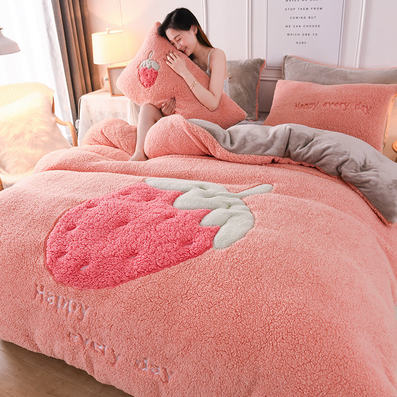冬季粉色少女心泰迪绒四件套卡通珊瑚绒加绒双面毛绒牛奶绒床单款