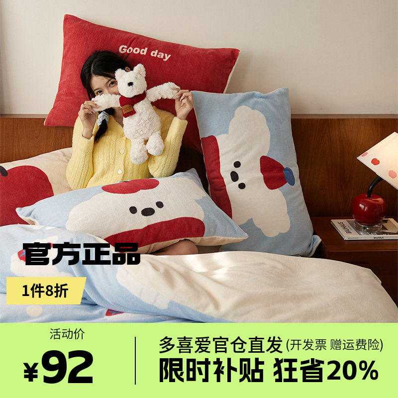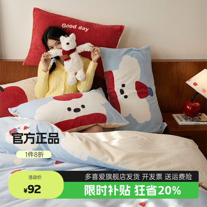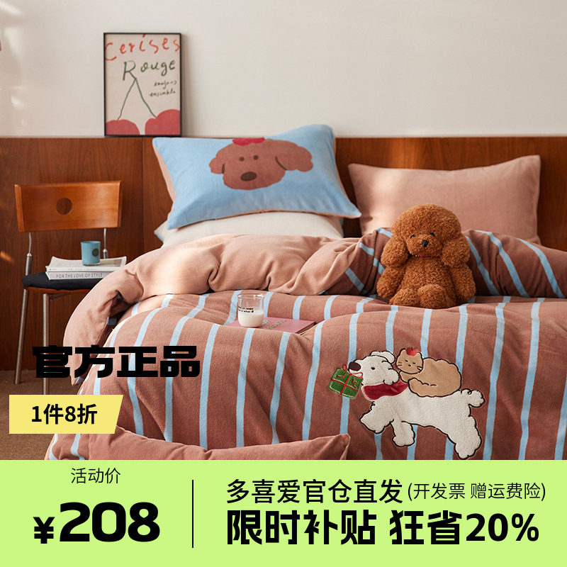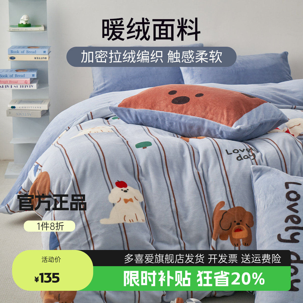 多喜爱珊瑚绒四件套卡通狗狗冬季暖绒加厚保暖套件床单被套三件套