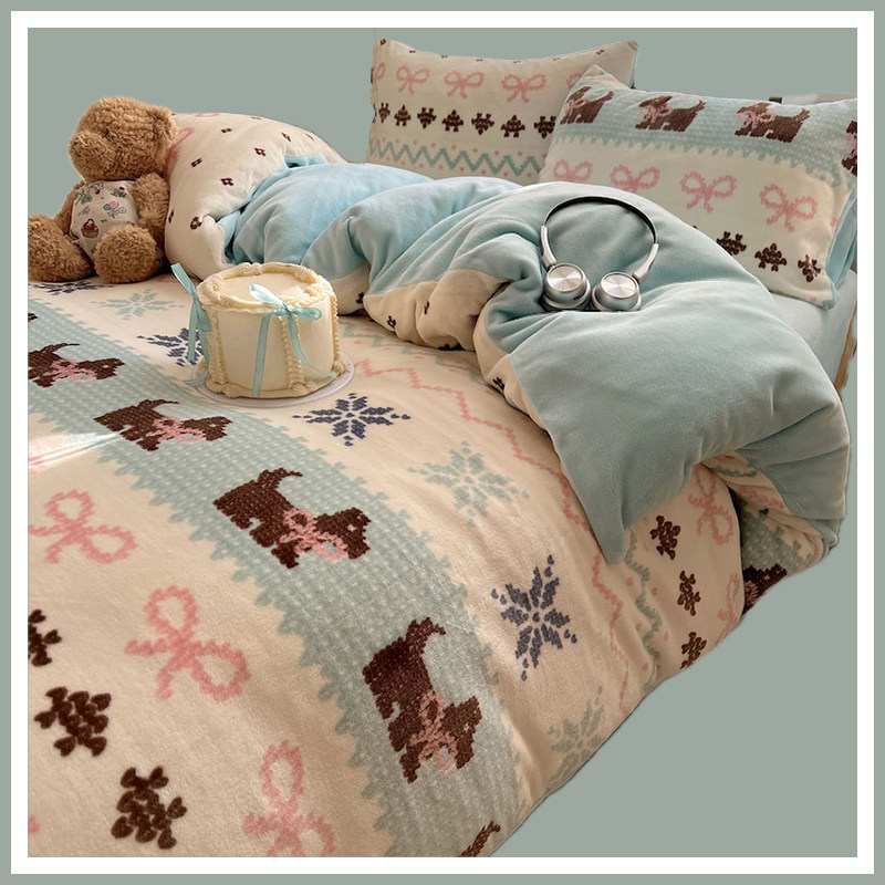 ins卡通小狗秋冬加厚保暖牛奶绒四件套被套法兰珊瑚绒床上用品