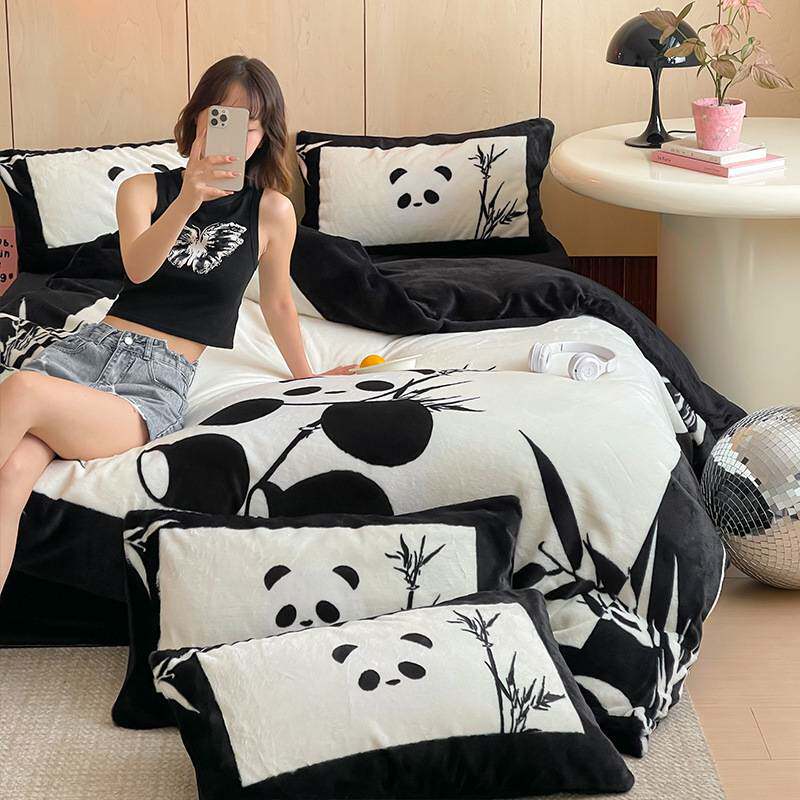 金喜鸟家纺小怪兽毛绒水貂绒冬季保暖四件套牛奶绒卡通可爱珊瑚绒