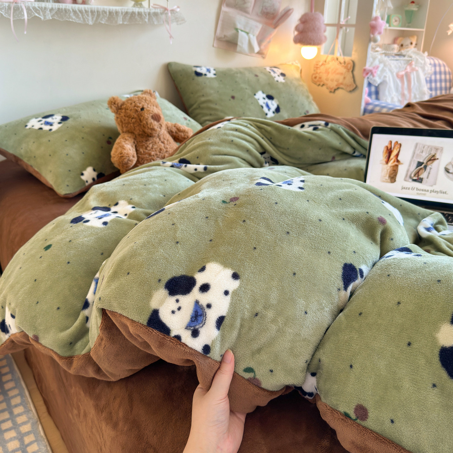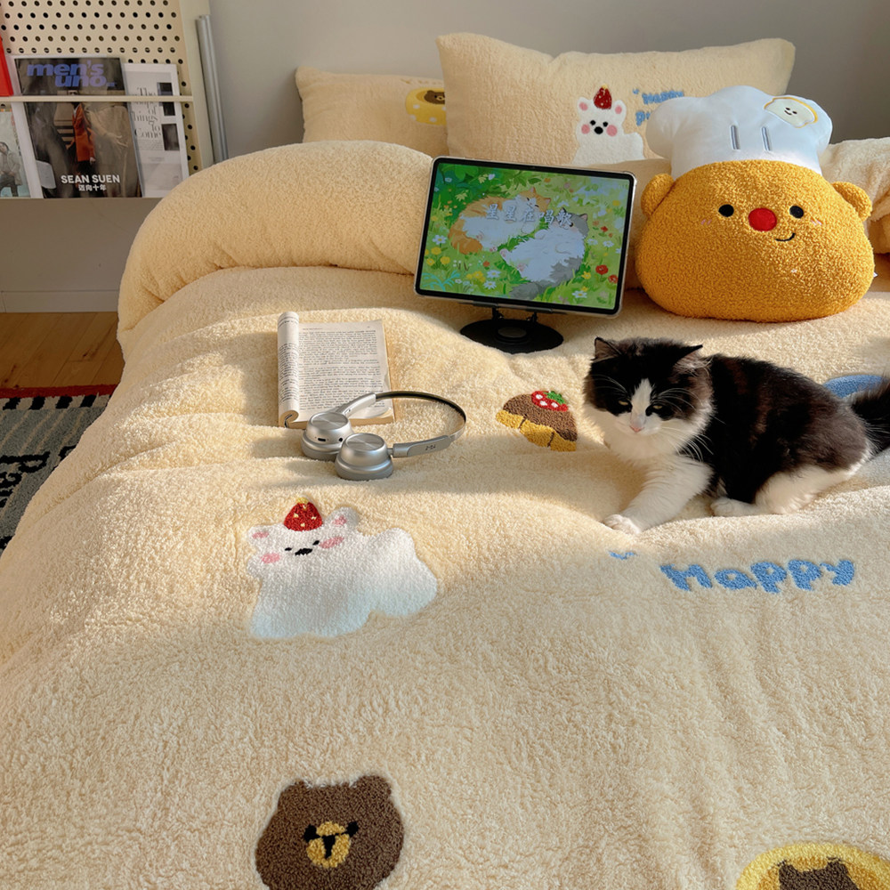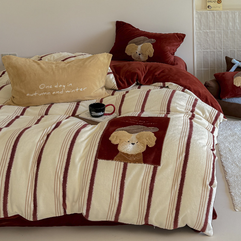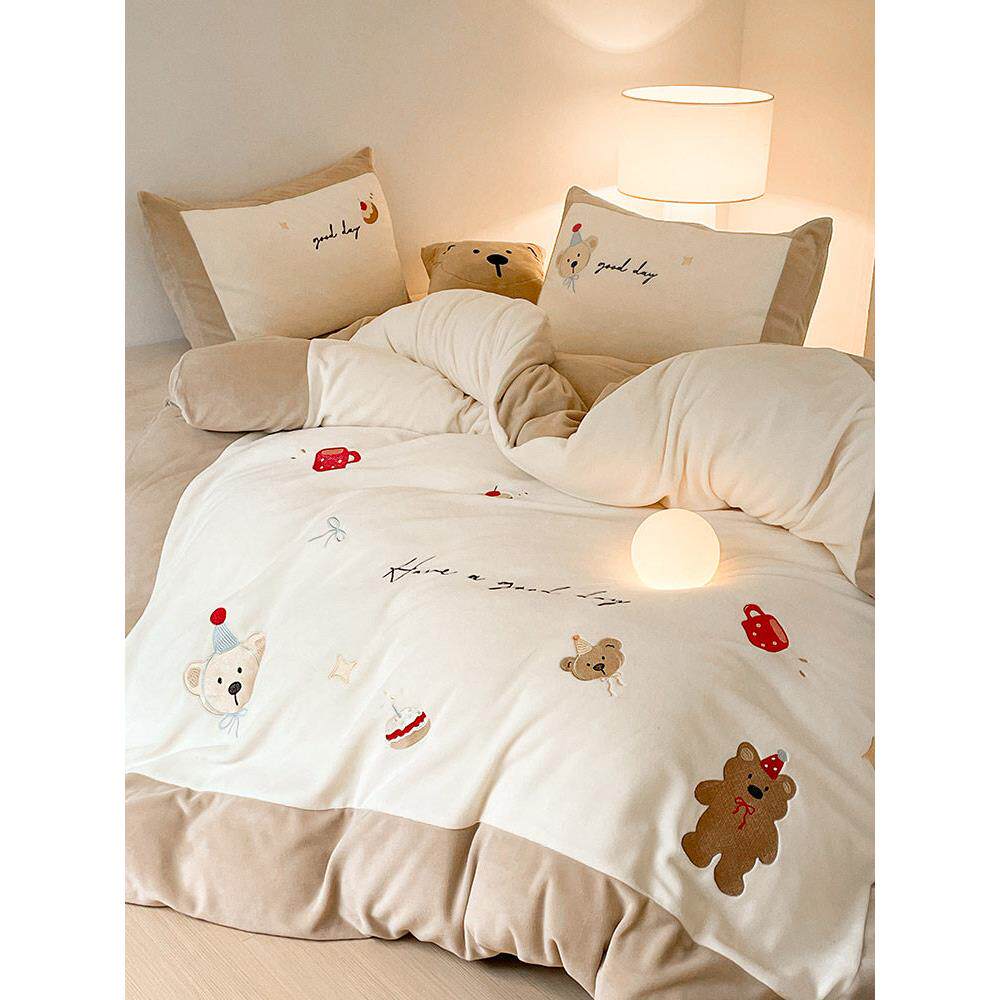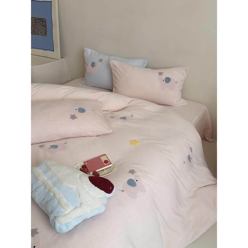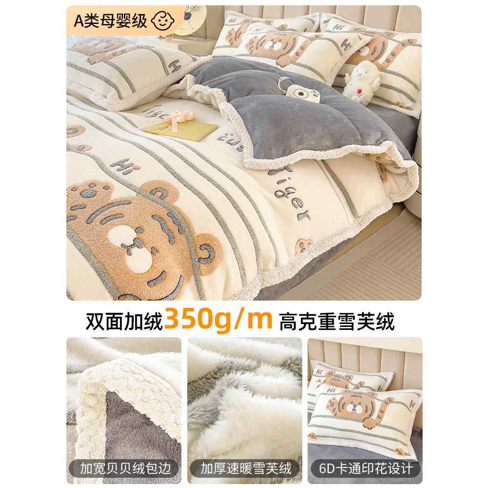 - 加绒四件套珊瑚绒加厚