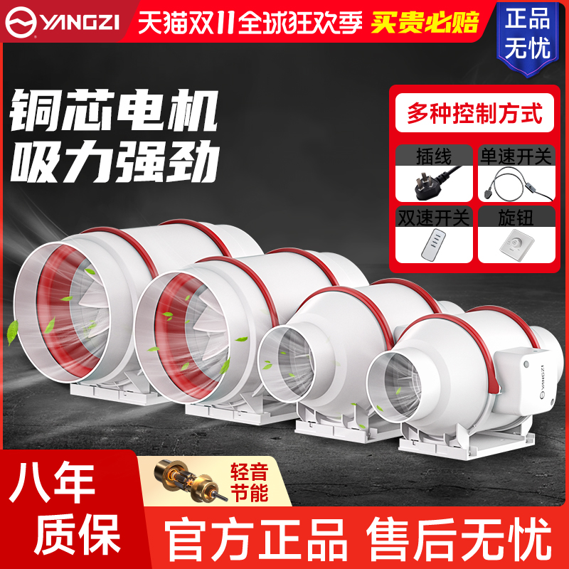 扬子管道风机斜流增压客厅大吸力静音卫生间换气扇厨房排风新风机