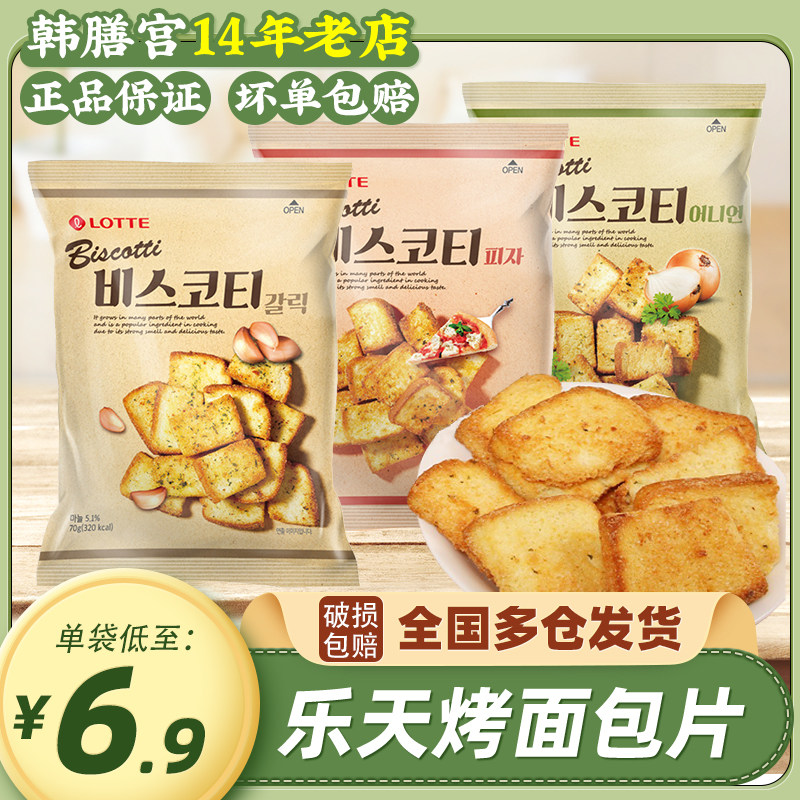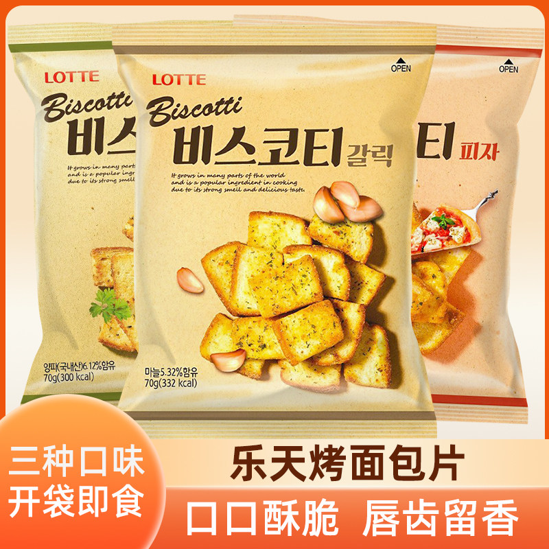 韩国进口乐天烤面包片70g蒜香披萨葱香黄油奶油面包干休闲零食