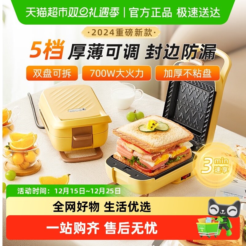 小熊三明治早餐机家用加厚三明治机小型多功能烤面包机轻食吐司机
