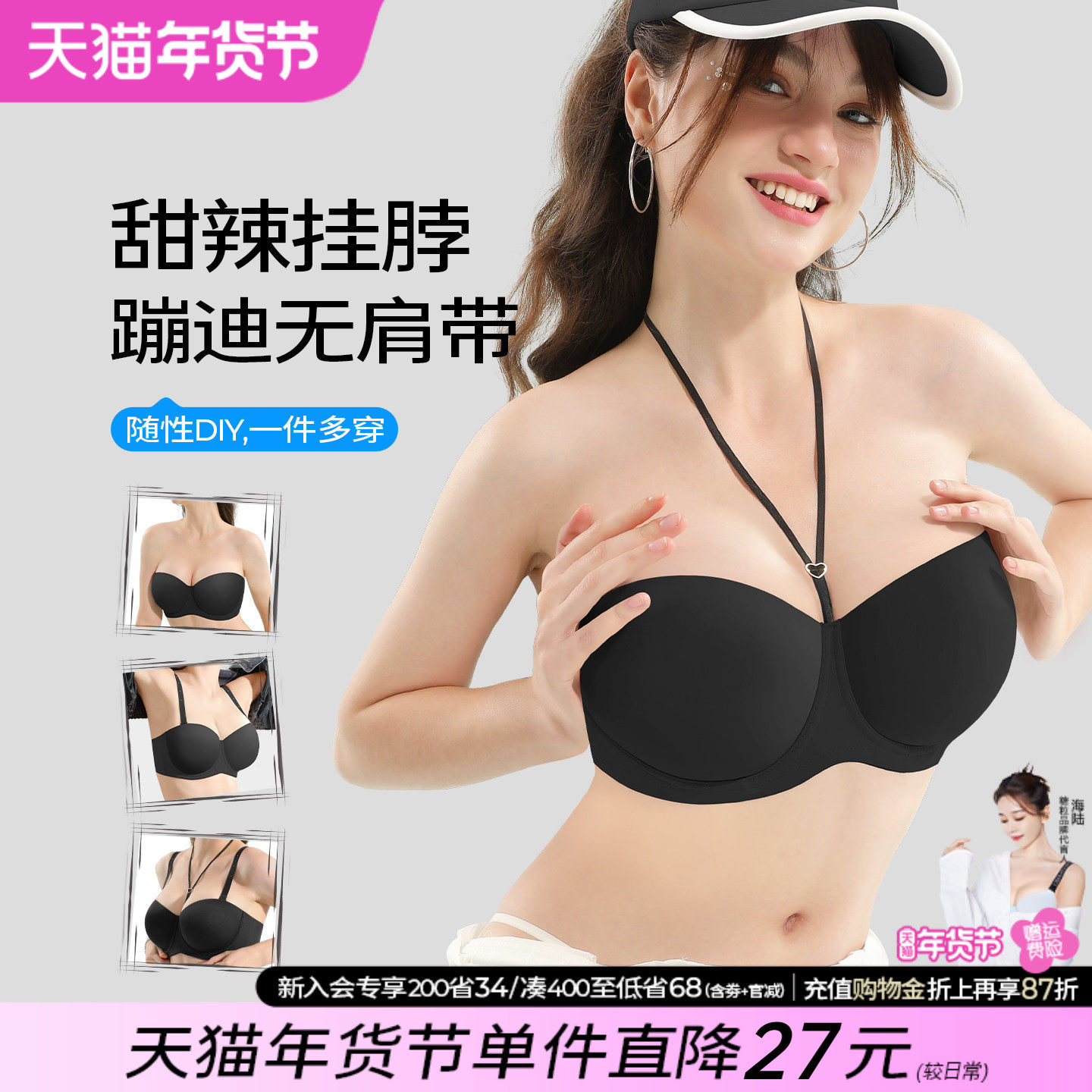 糖粒挂脖无肩带内衣女防滑聚拢无痕抹胸婚纱大胸防下垂大码文胸罩
