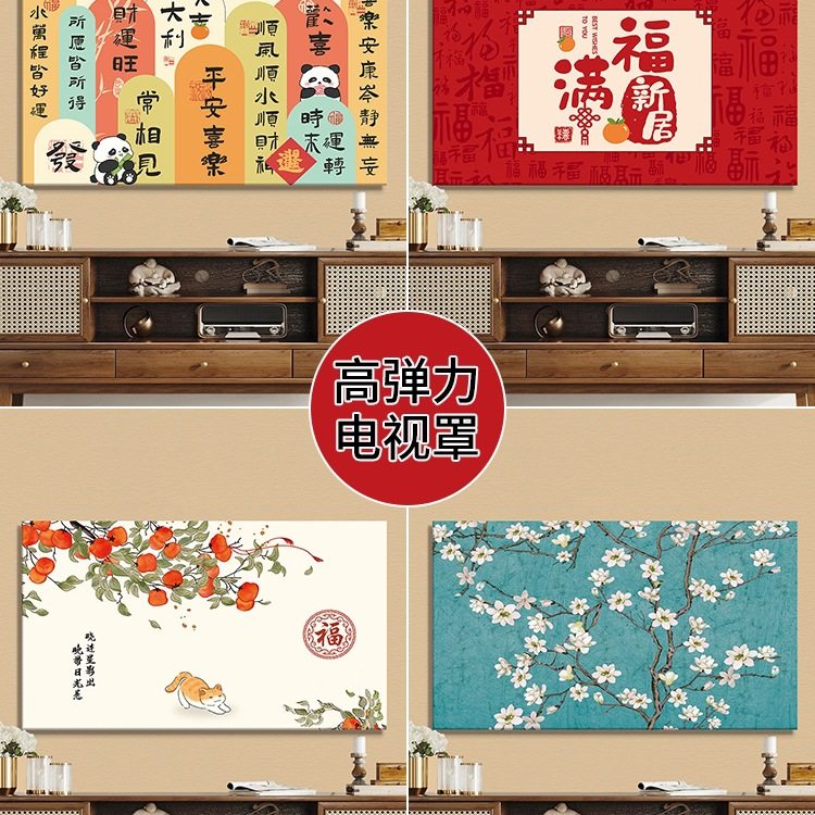 2025年款新中式电视机防尘罩套弹力全包盖布65英寸75挂式55寸曲面