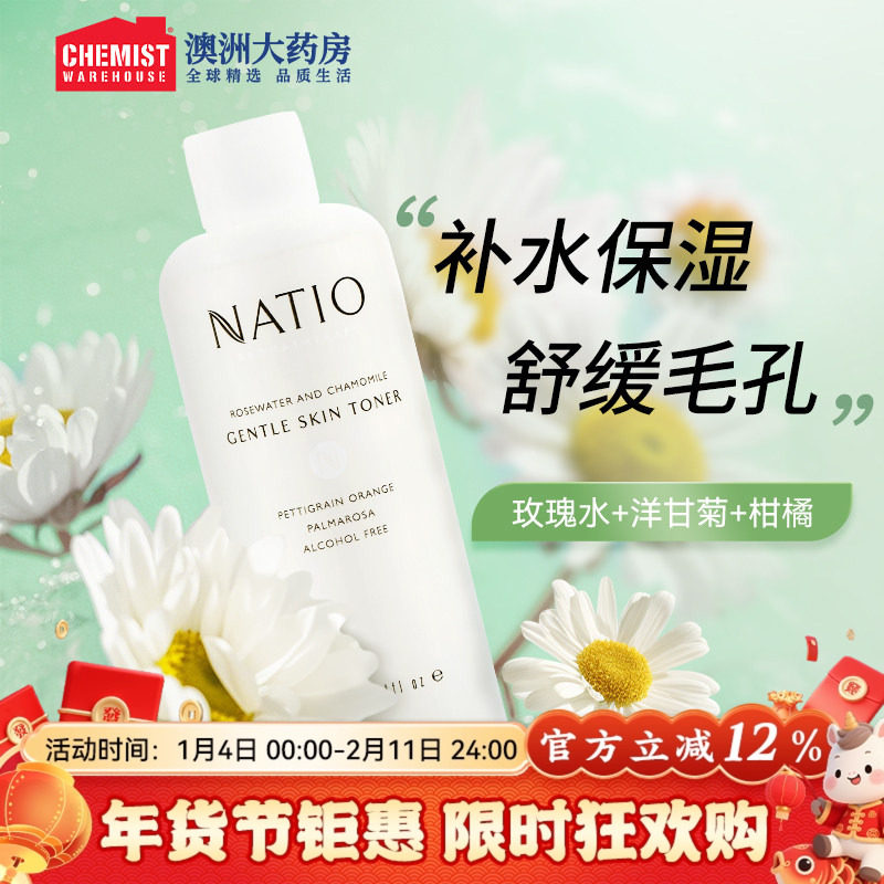 NATIO娜迪奥洋甘菊玫瑰温和爽肤水澳洲250ml补水保湿舒缓毛孔柔肤