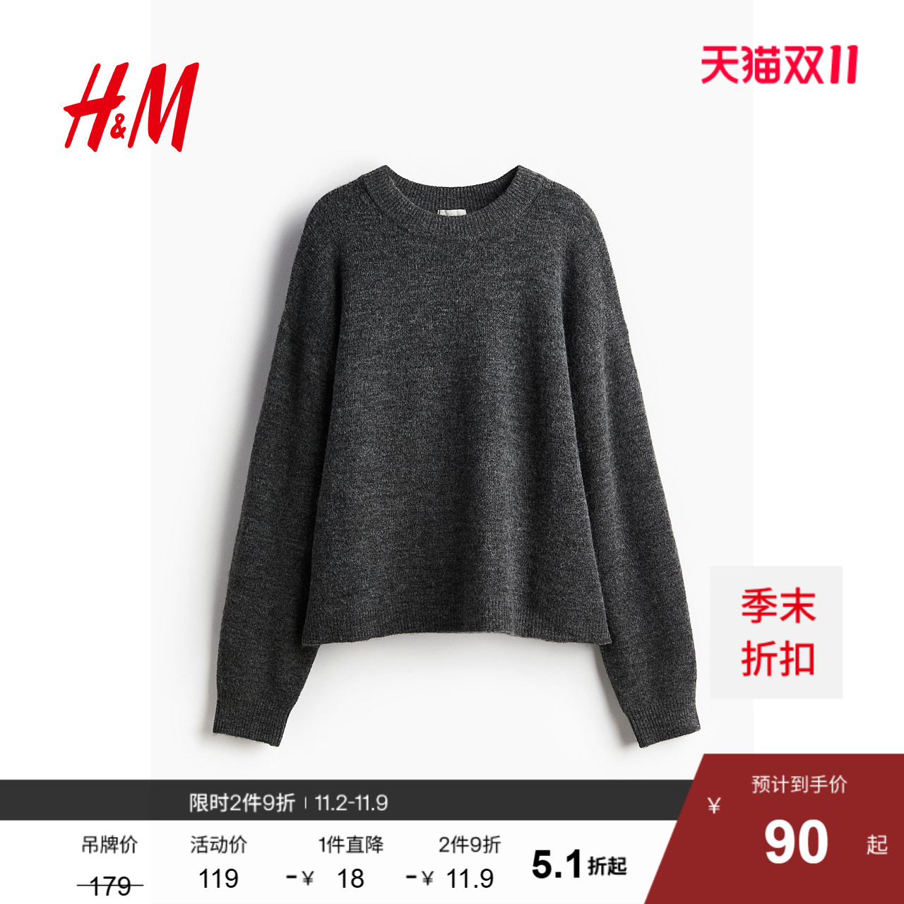 HM女装毛针织衫秋季温柔保暖休闲慵懒风法式宽松长袖套衫0983240