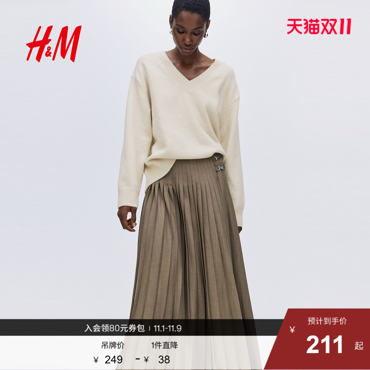 HM女装毛针织衫2025秋季新款保暖休闲毛衣大廓形V领套衫1303131
