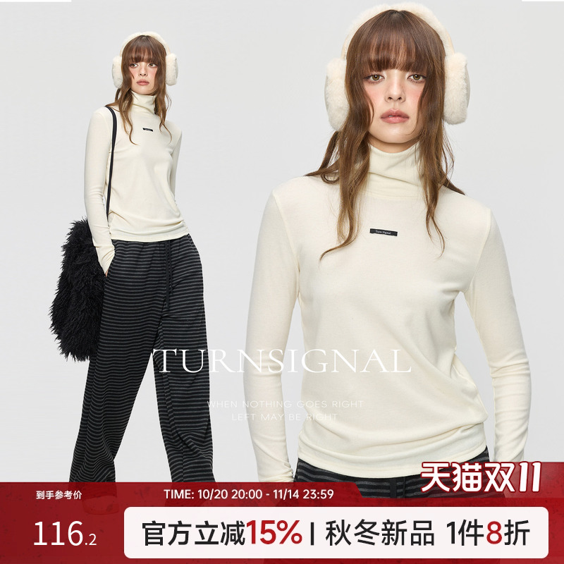 TurnSignal时尚高领针织打底衫女秋冬2025新款休闲宽松长袖上衣