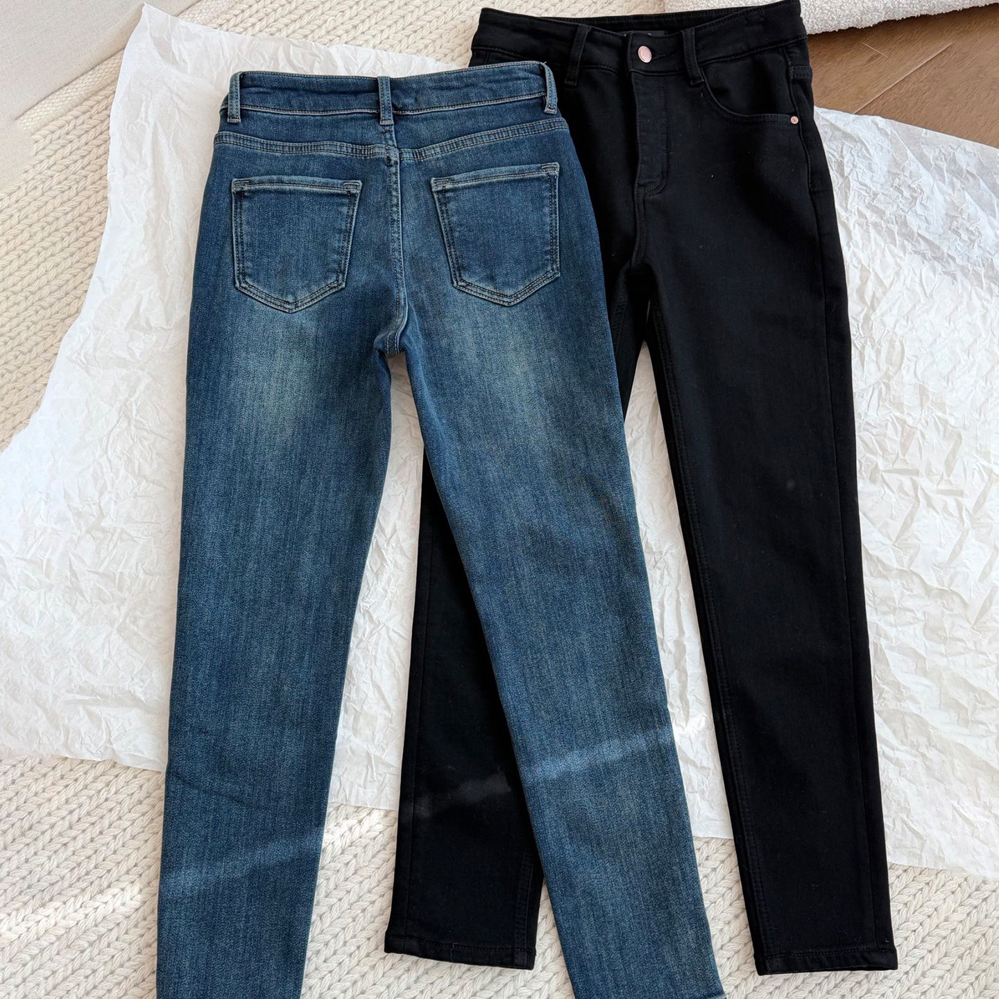 - 黑色高腰牛仔裤