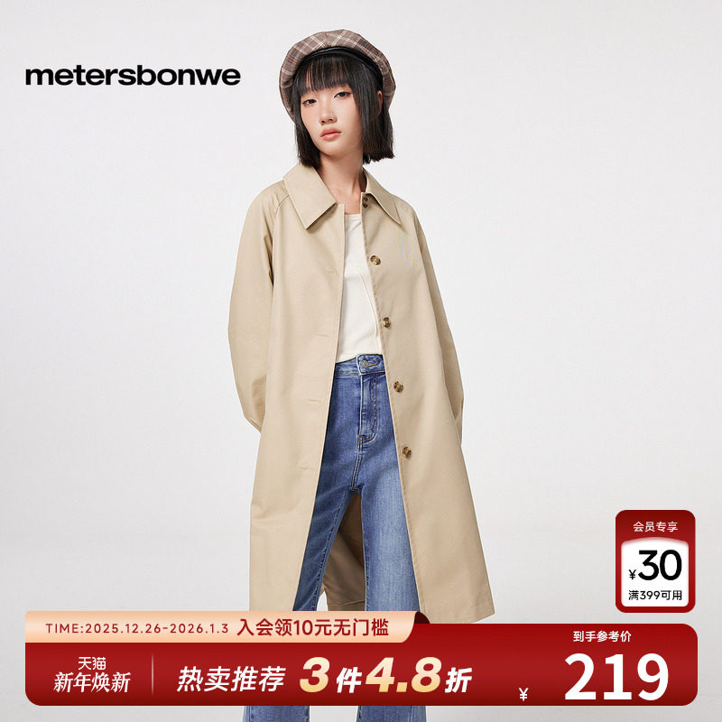 美特斯邦威夹克女款春秋棉质潮流时尚宽松中长款风衣简约上衣外套