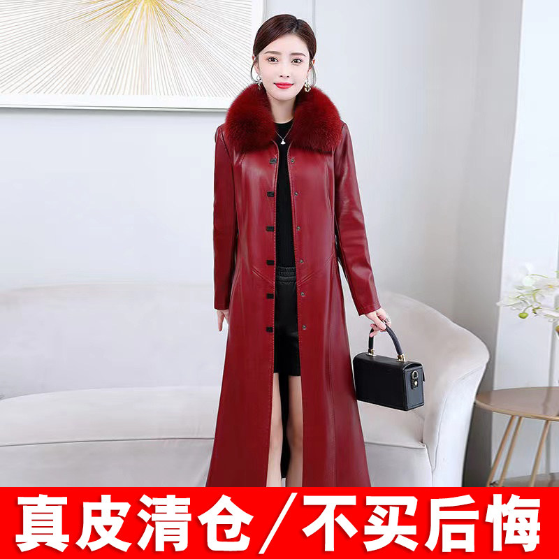 2025春秋新款海宁真皮皮衣女中长款过膝绵羊皮风衣加棉修身外套潮
