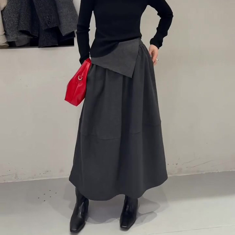 加绒加厚毛呢A字裙子高腰醋酸羊毛半身裙时尚气质法式灰色长裙子