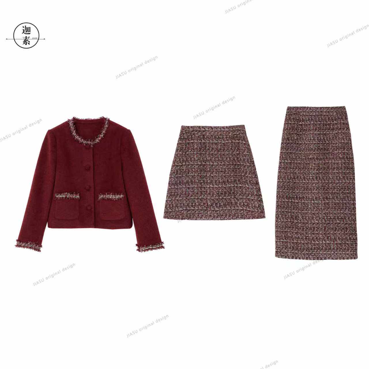 JIASU 【绮梦之旅】2025冬季定制毛呢流苏小香风羽绒套装S630