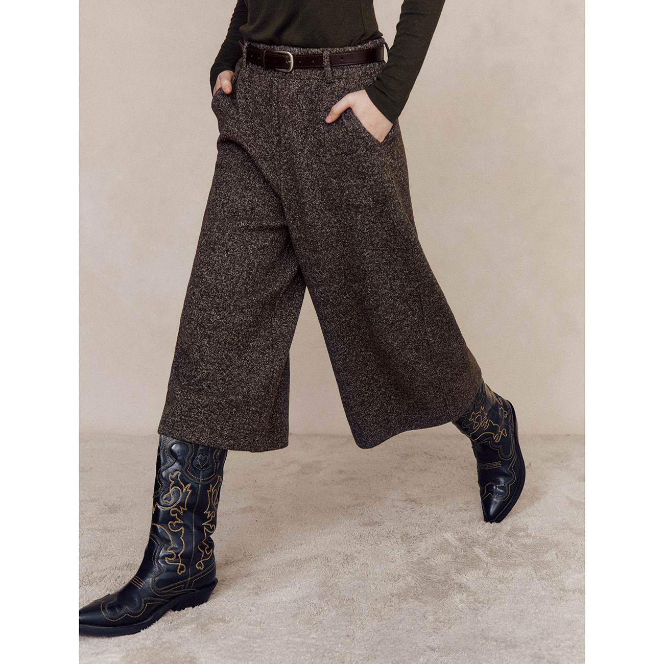 实穿主义!~棕色小个子八分毛呢休闲裤女秋冬羊毛慵懒宽松阔腿裤