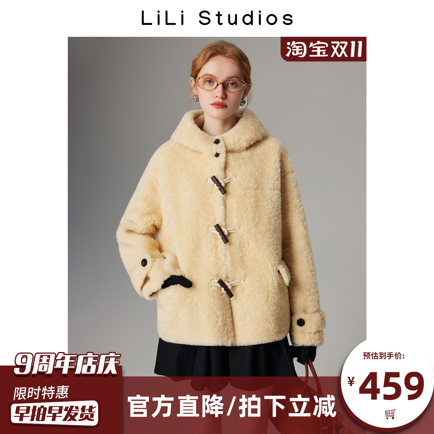 LILUSHOP 100羊毛皮毛一体宽松外套时尚气质秋冬厚实皮草大衣女