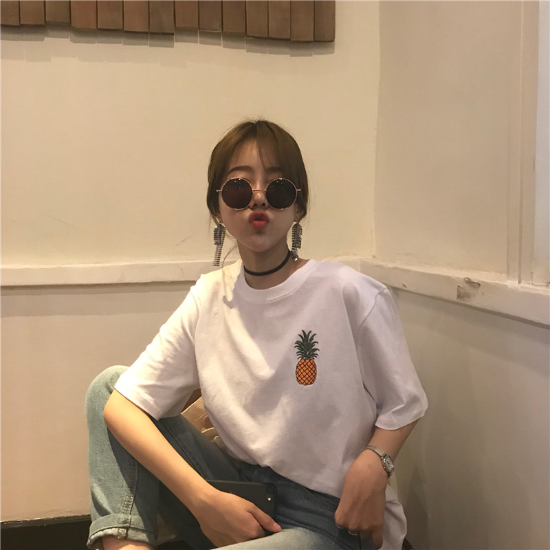 夏季新款闺蜜情侣装男女学生班服菠萝印花潮流短袖T恤打底衫上衣