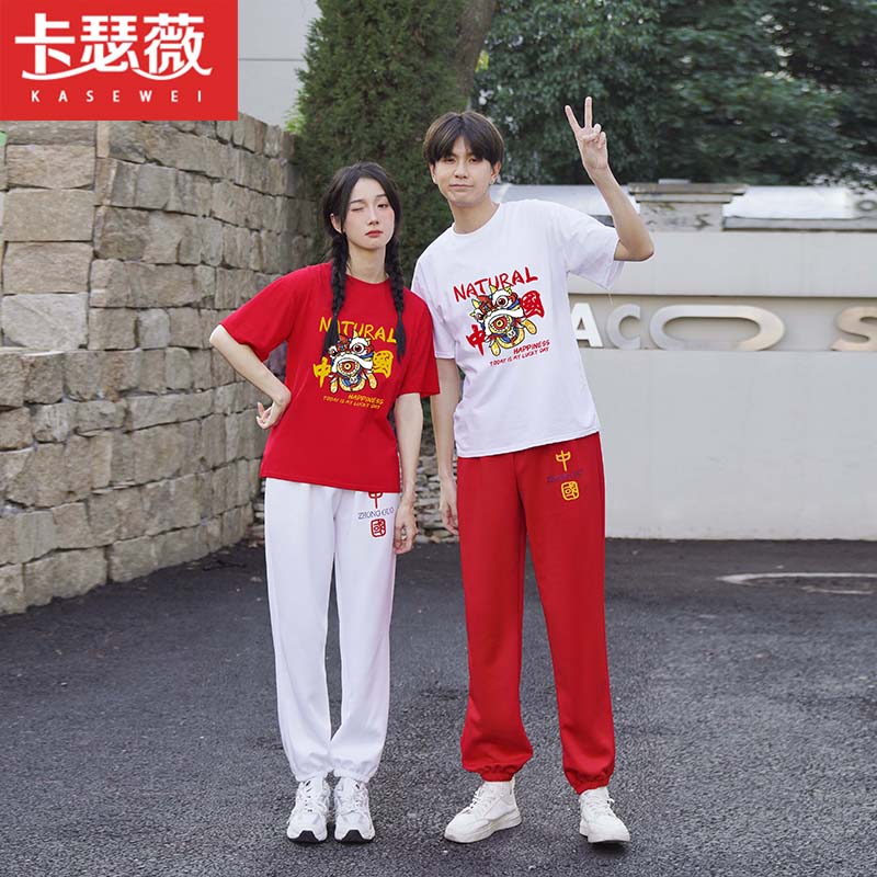 情侣装夏装短袖T恤中国风初中高中生学院风小学生班服运动会套装