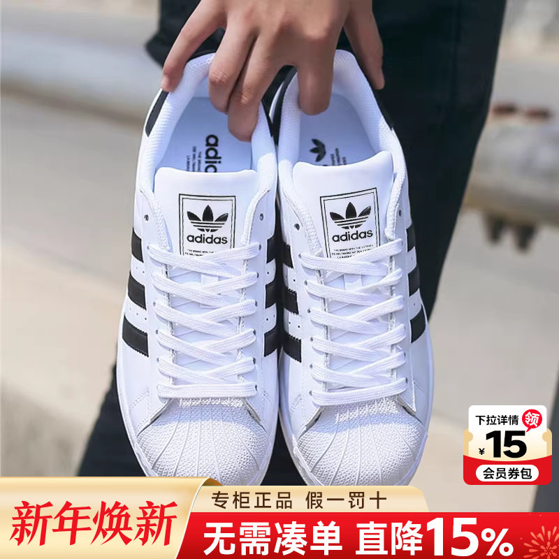 阿迪达斯男鞋贝壳头金标板鞋男官方旗舰正品秋季三叶草小白鞋女鞋