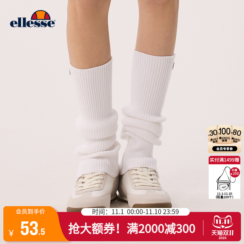 ellesse小贝壳堆堆袜女秋冬小腿袜子雪地靴加厚白色拼接袜套百搭