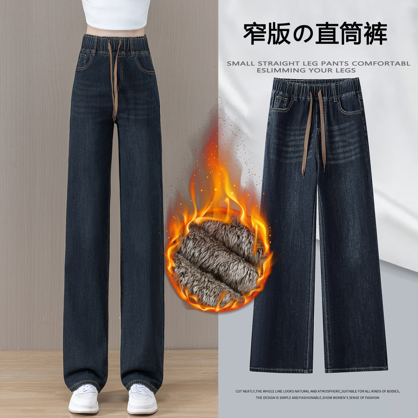 - 加绒直筒裤