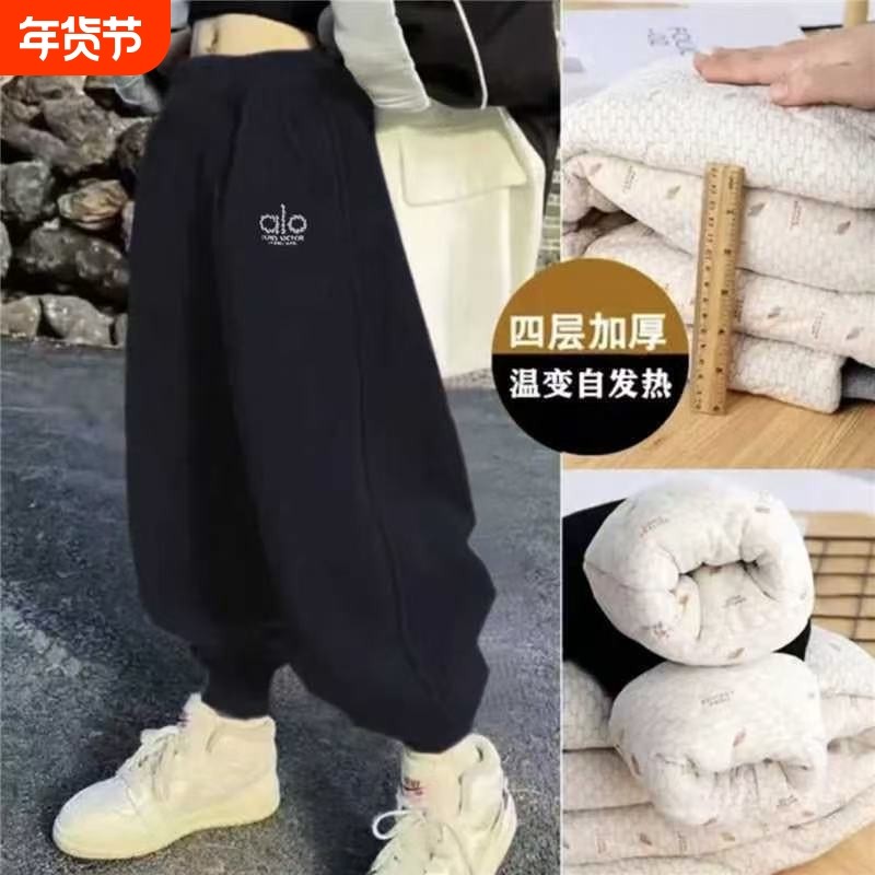 羊绒匹马棉冬装儿童男款加绒裤子女童灰色夹绒灯笼裤宝宝冬天棉裤