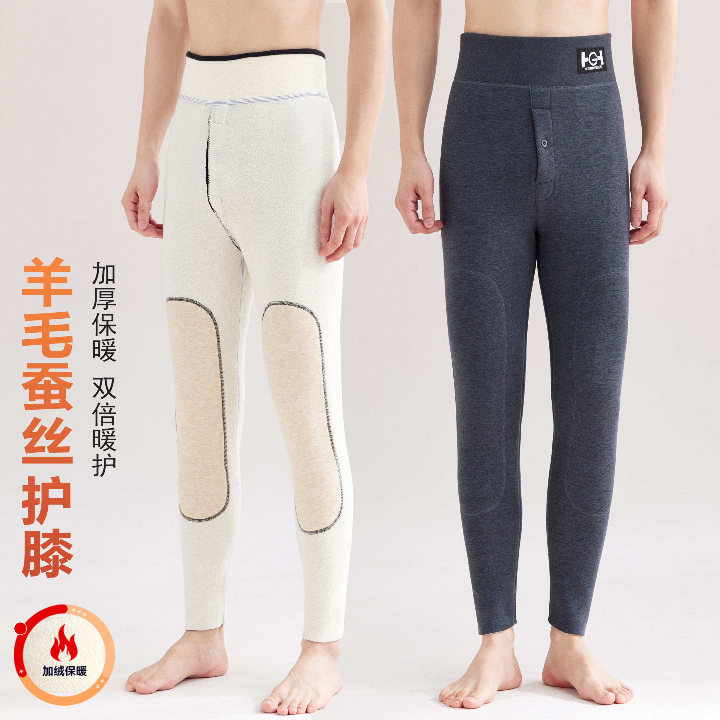 羊毛蚕丝护膝保暖裤秋冬季男士芭比裤高腰打底裤冬天零下防寒棉裤