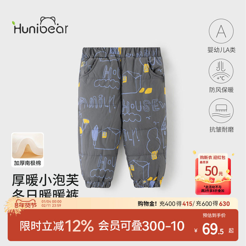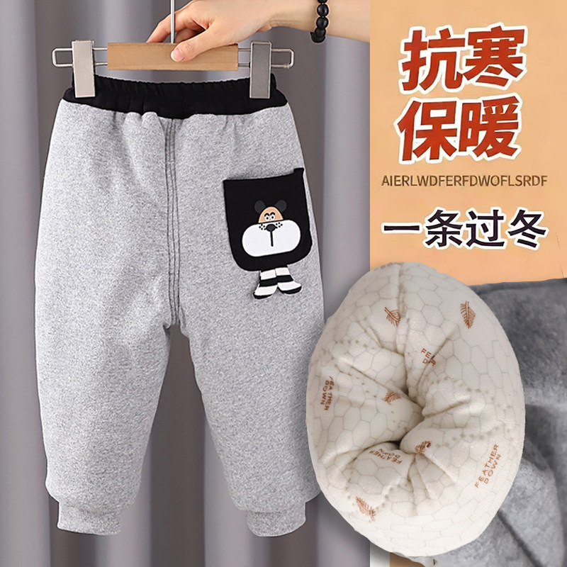 欢喜小熊男童加棉裤子冬季保暖衣服宝宝外出冬装儿童长裤冬天棉裤