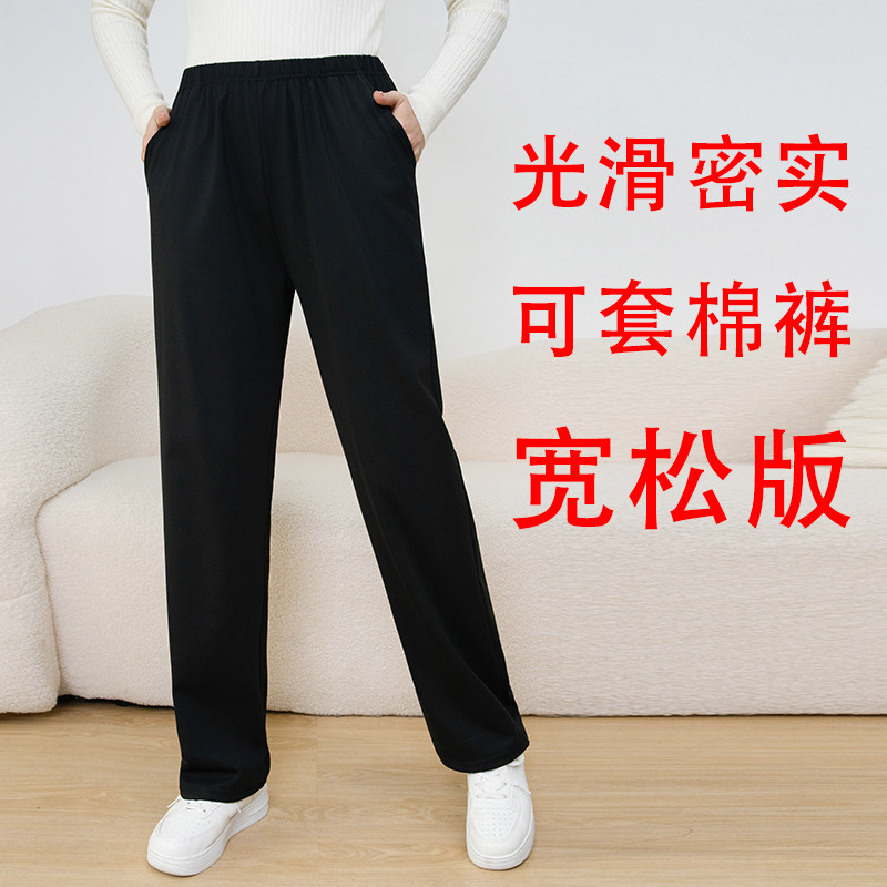 高腰口袋直筒裤冬天可套棉裤防风厚实冰丝锦纶宽松中老年妈妈加肥