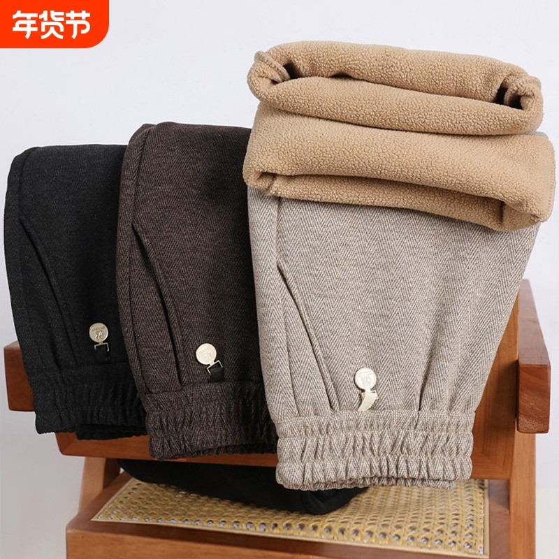 男士加绒裤子冬季加厚羊羔绒裤子牛仔裤男2025新款松紧腰冬天棉裤