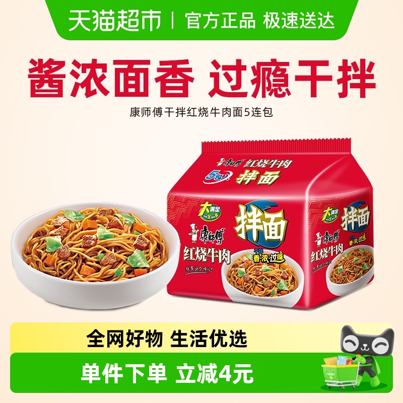 今麦郎大今野1.5倍红烧牛肉面5袋方便面香辣袋装泡面宿舍速食批发