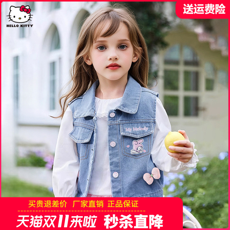 HelloKitty童装女童马甲女孩洋气牛仔背心外穿宝宝马褂小童春秋款