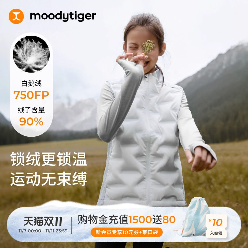 moodytiger女童羽绒马甲25秋冬新款保暖防风无氟拒水运动加绒背心