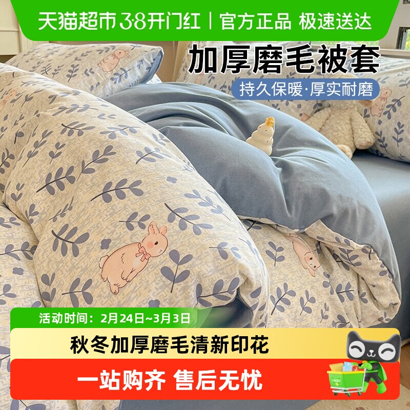 南极人纯棉磨毛被套四件套2025新款冬季纯棉单人150x200x230被罩
