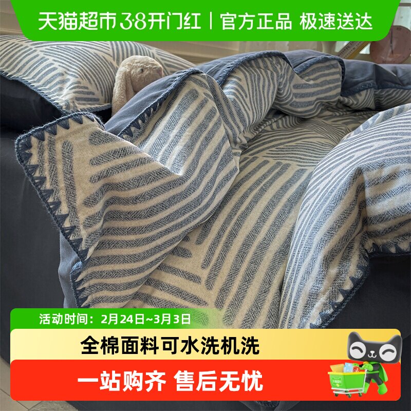 水星家纺纯棉磨毛被套四件套全棉床单100保暖2025秋冬季床上用品
