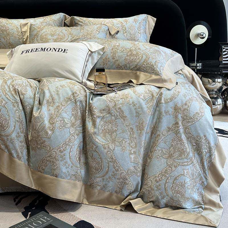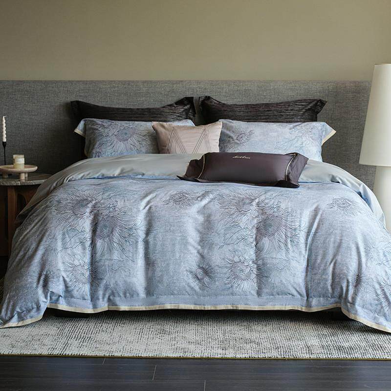 水星家纺60S长绒棉轻奢磨毛四件套法式全棉纯棉套件印花被套床单