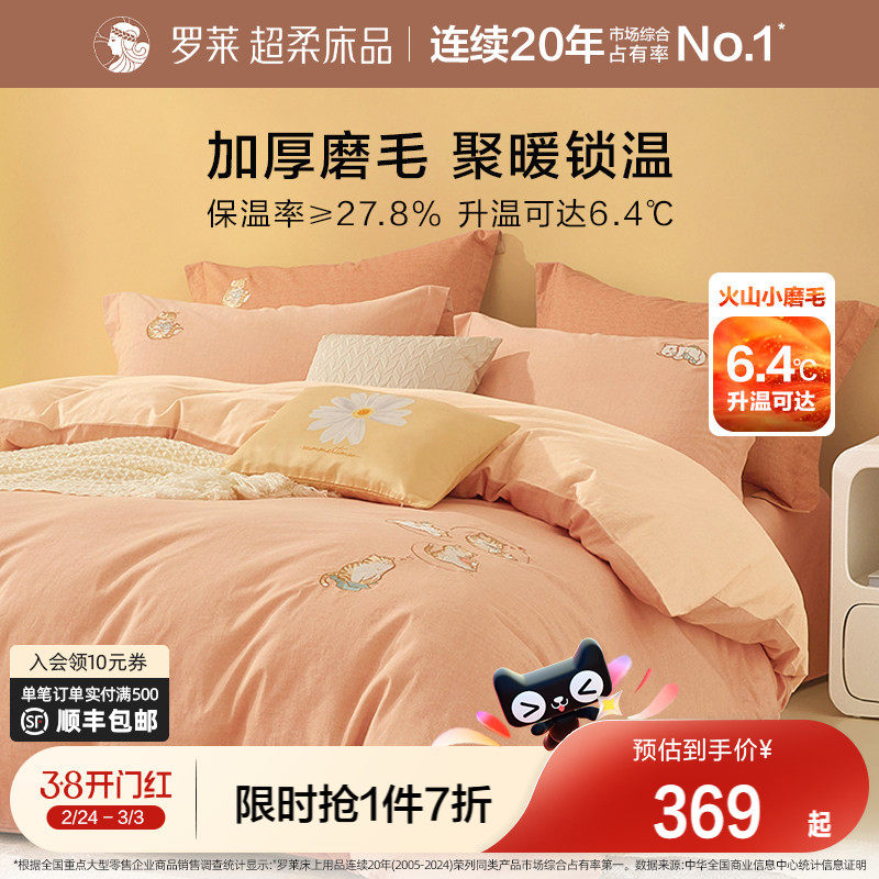 罗莱家纺秋冬新款磨毛三四件套全棉纯棉加厚保暖床上用品床单被套