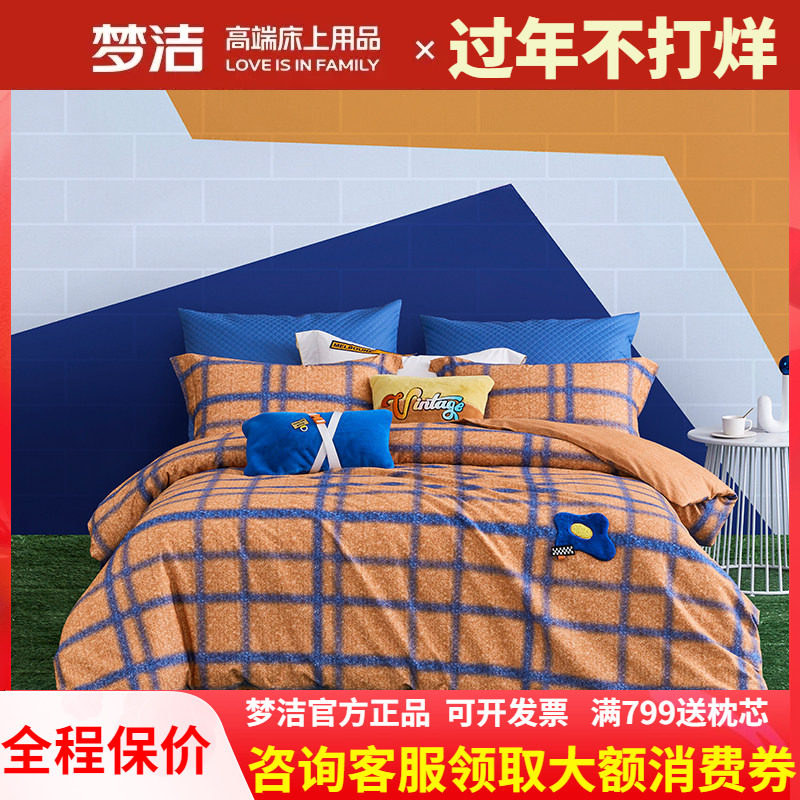 梦洁家纺全棉纯棉磨毛被套四件套248冬季保暖加厚格鲁斯夏季清仓