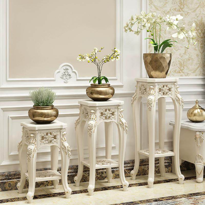 欧式白色花架子室内客厅落地式阳台置物架实木植物花盆栽托架家用