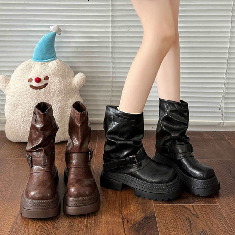 帅气复古马丁靴子女短靴2025新款春秋季小个子粗跟机车堆堆裤管靴