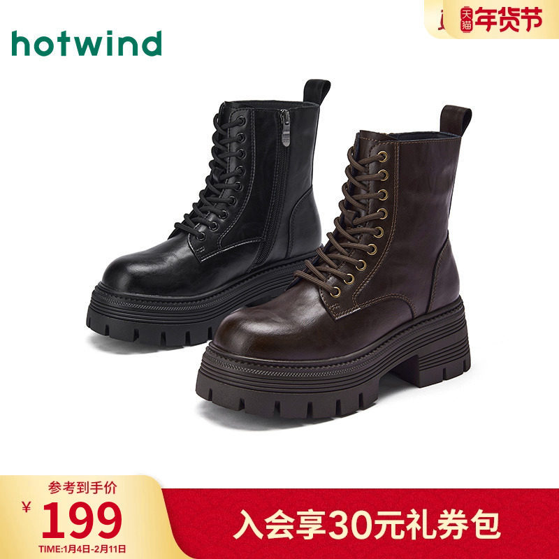 热风厚底马丁靴女2025年冬季新款增高休闲短靴百搭时装靴子女鞋子