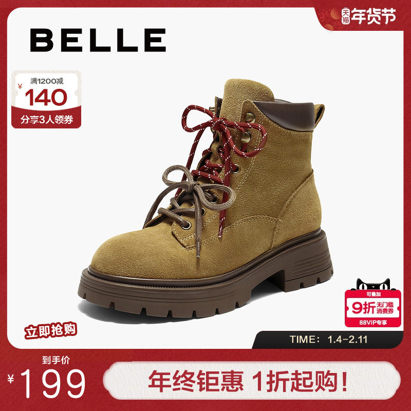 百丽靴子女厚底大黄工装马丁靴冬季新款休闲西部短靴E4W2DDD5
