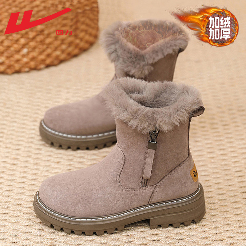 回力雪地靴女2025年新款棉鞋女冬加绒防滑皮毛一体马丁靴子女短靴