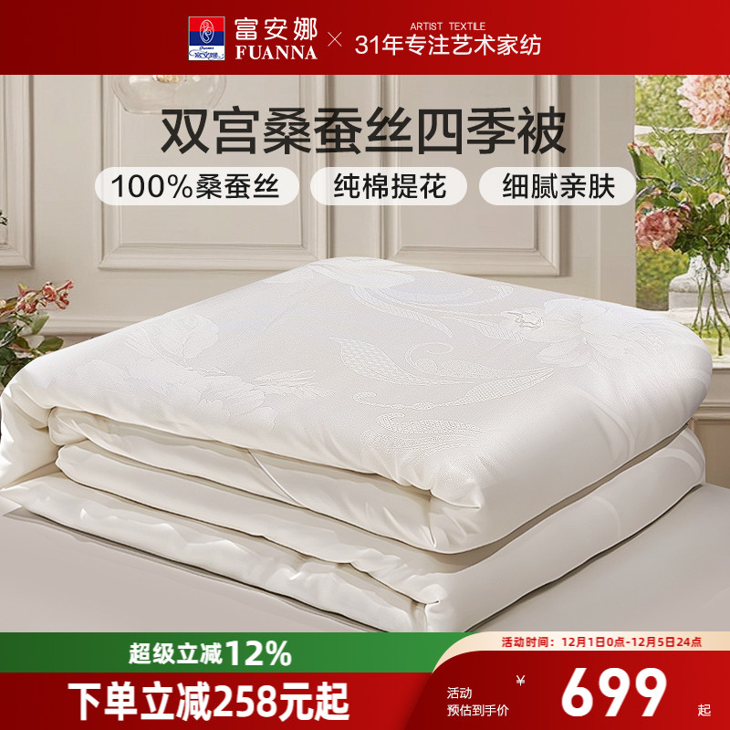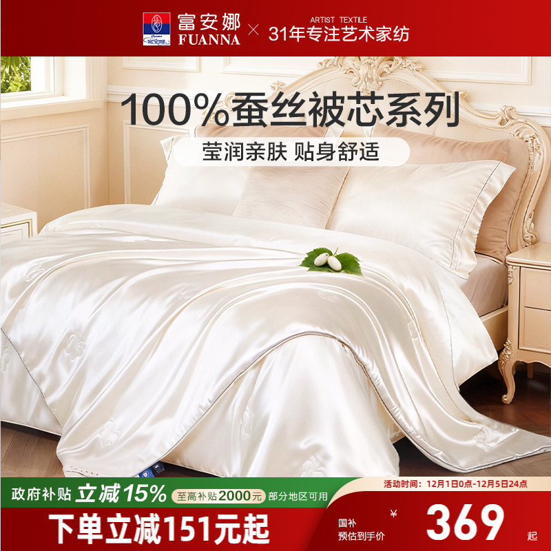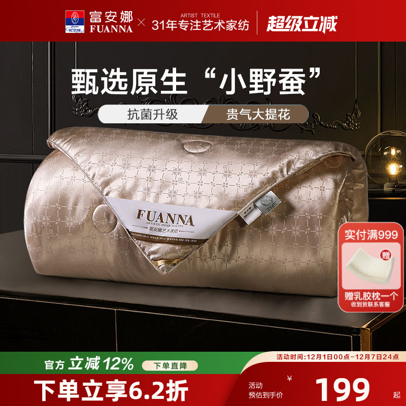 【主播推荐】富安娜成人A类蚕丝被冬被子母四季双人被芯保暖被子