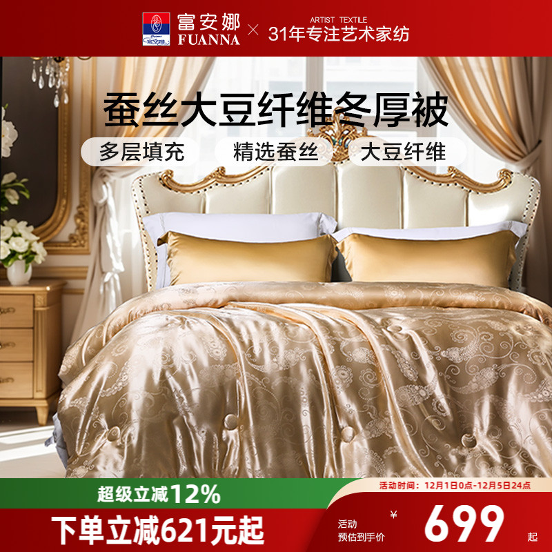 【专柜同款】富安娜蚕丝被芯大豆纤维冬厚被四季被双人被子莱德特