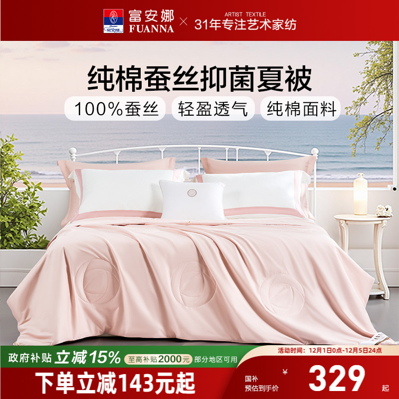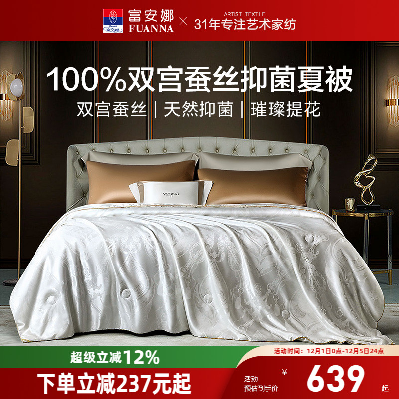 富安娜蚕丝被100桑蚕丝空调被夏凉二合一被冬厚四季通用被子被芯