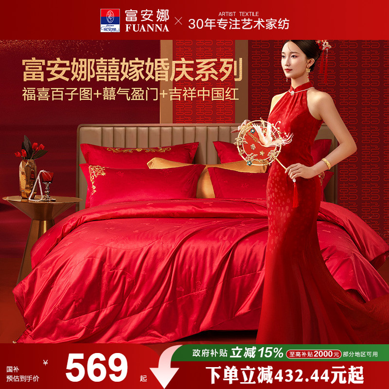富安娜蚕丝被芯结婚喜庆双人夏被四季春秋被子婚庆空调被新婚喜被