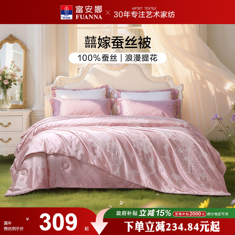 富安娜蚕丝被100%蚕丝被子婚庆春秋被加厚保暖冬被四季喜庆喜被子