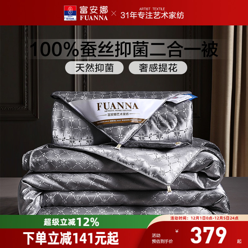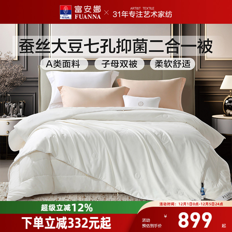 富安娜蚕丝被抗菌被子四季通用春秋被二合一子母被冬季保暖冬厚被